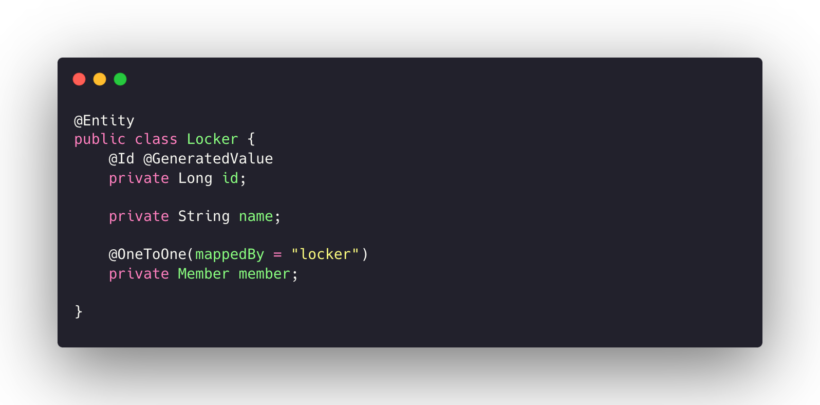 locker에는 @OneToOne(mappedBy="") 만 작성해주면 된다.
