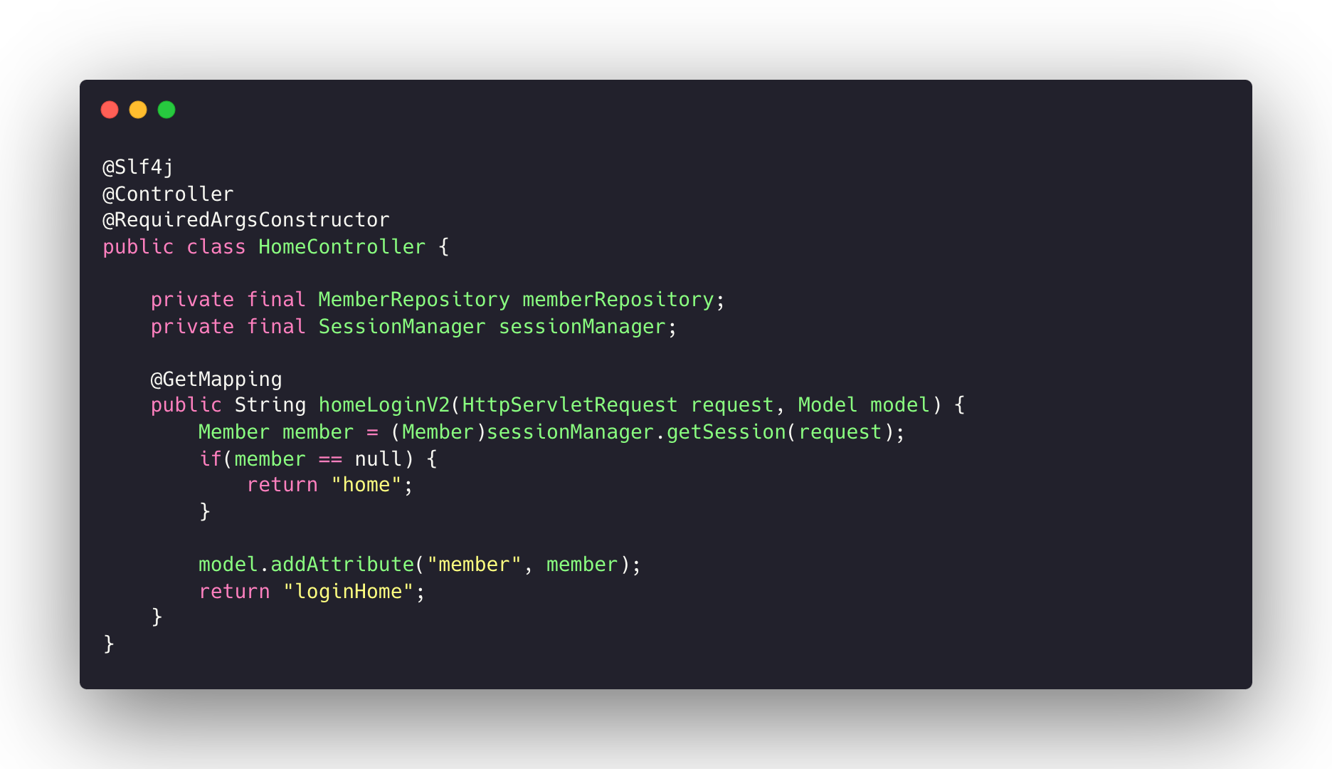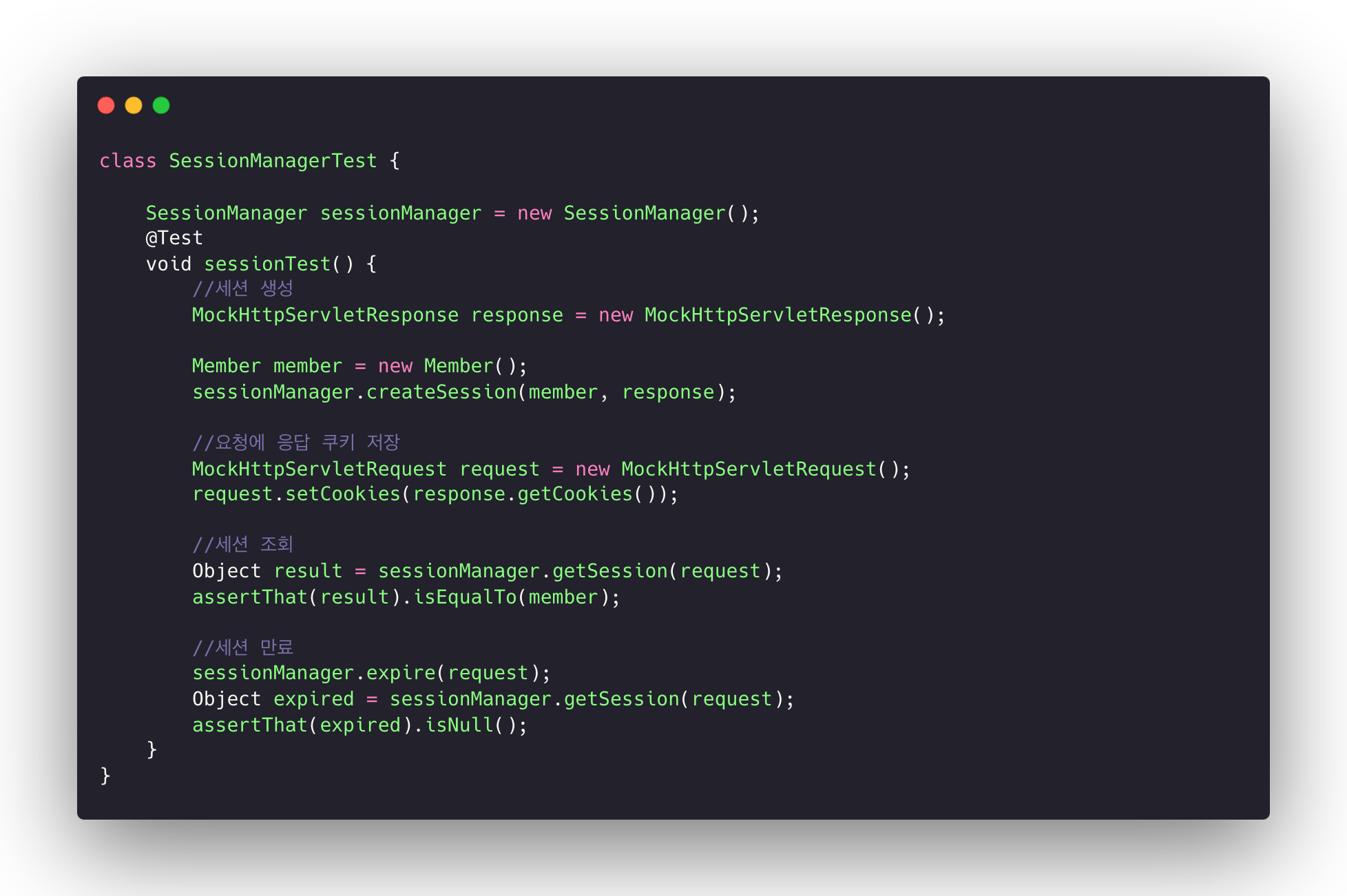 1. 클라이언트가 요청한 sessionId 쿠키의 값으로, 세션 저장소에 보관한 값 조회