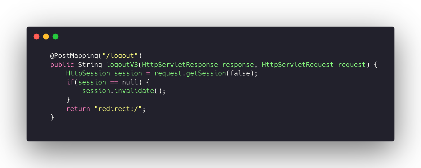 - 세션이 없으면 새로운 세션을 생성하지 않는다. null 을 반환한다.