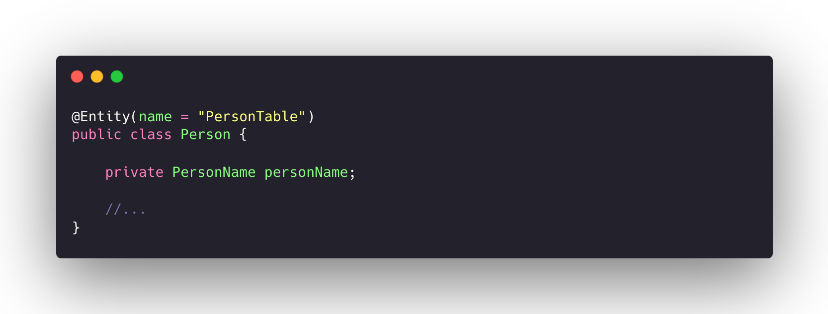 PersonName 유형의 속성을 @Entity 클래스 에 추가해준다.