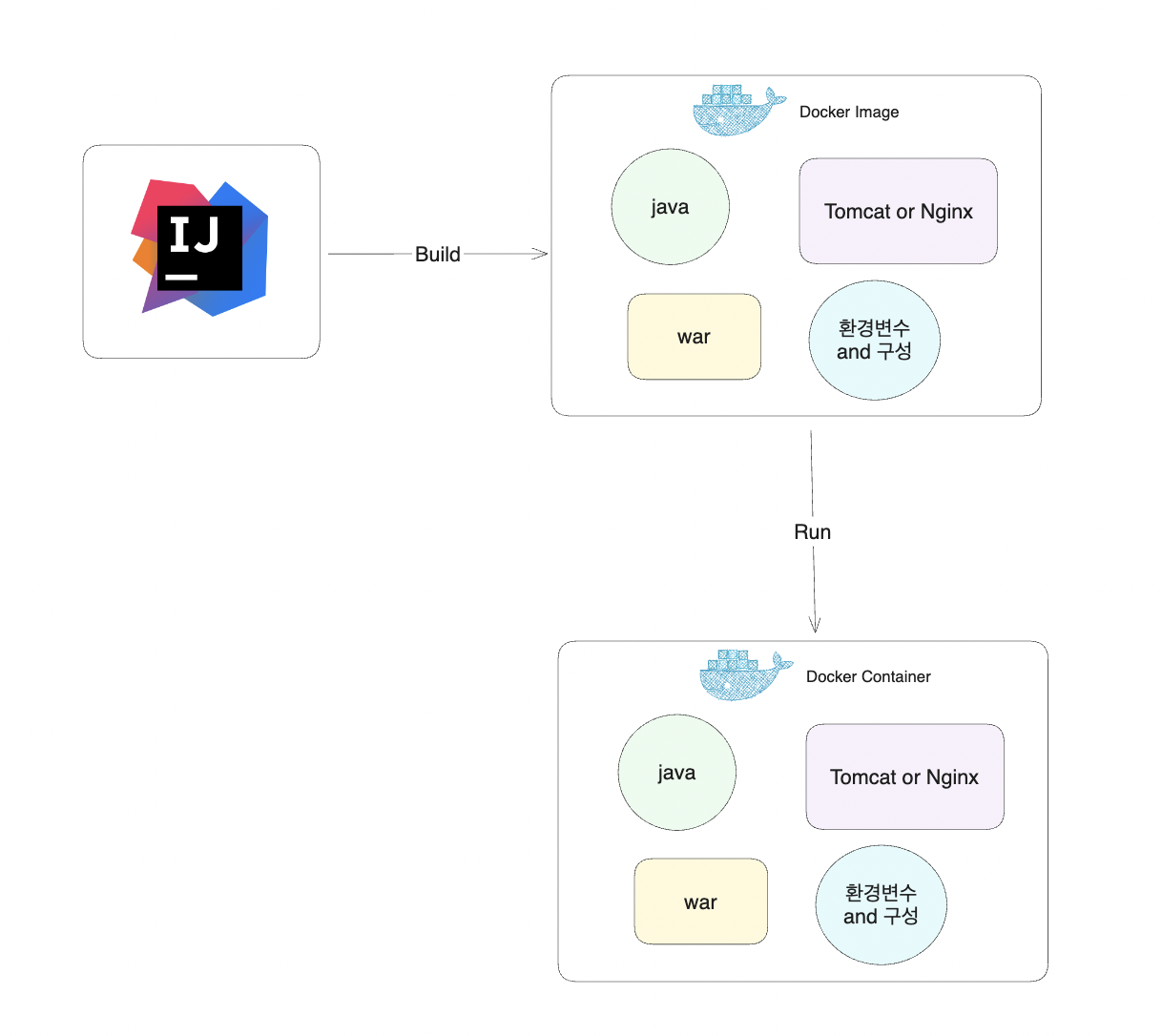 하지만 docker는 jar을 배포하는 것이 아닌 Container(컨테이너)를 실행하는 것이다.